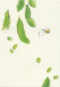 えだまめの緑に、ビールの金色でアクセントを付けました。ふだんは、日本画の作品も制作しています。日本画がもつ、余白のうつくしさや季節のみずみずしさを、気軽に、そしてほんのりと感じられるようなポストカードを目指しました。今回このような賞をいただき、たくさんの方に手にとっていただける作品づくりをもっともっとがんばっていきたい!と感じています。ありがとうございました。